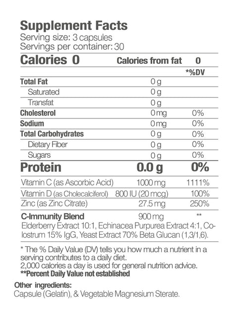 ¿Cuáles son los ingredientes? ¿Cuál es la información nutricional de C-Immunity?