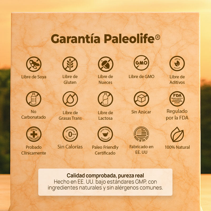 ✔️ Garantía de calidad Paleolife. Elaborado en instalaciones certificadas GMP. Fórmulas revisadas por profesionales de la salud. Cada lote cumple con estrictos controles de pureza y concentración.
